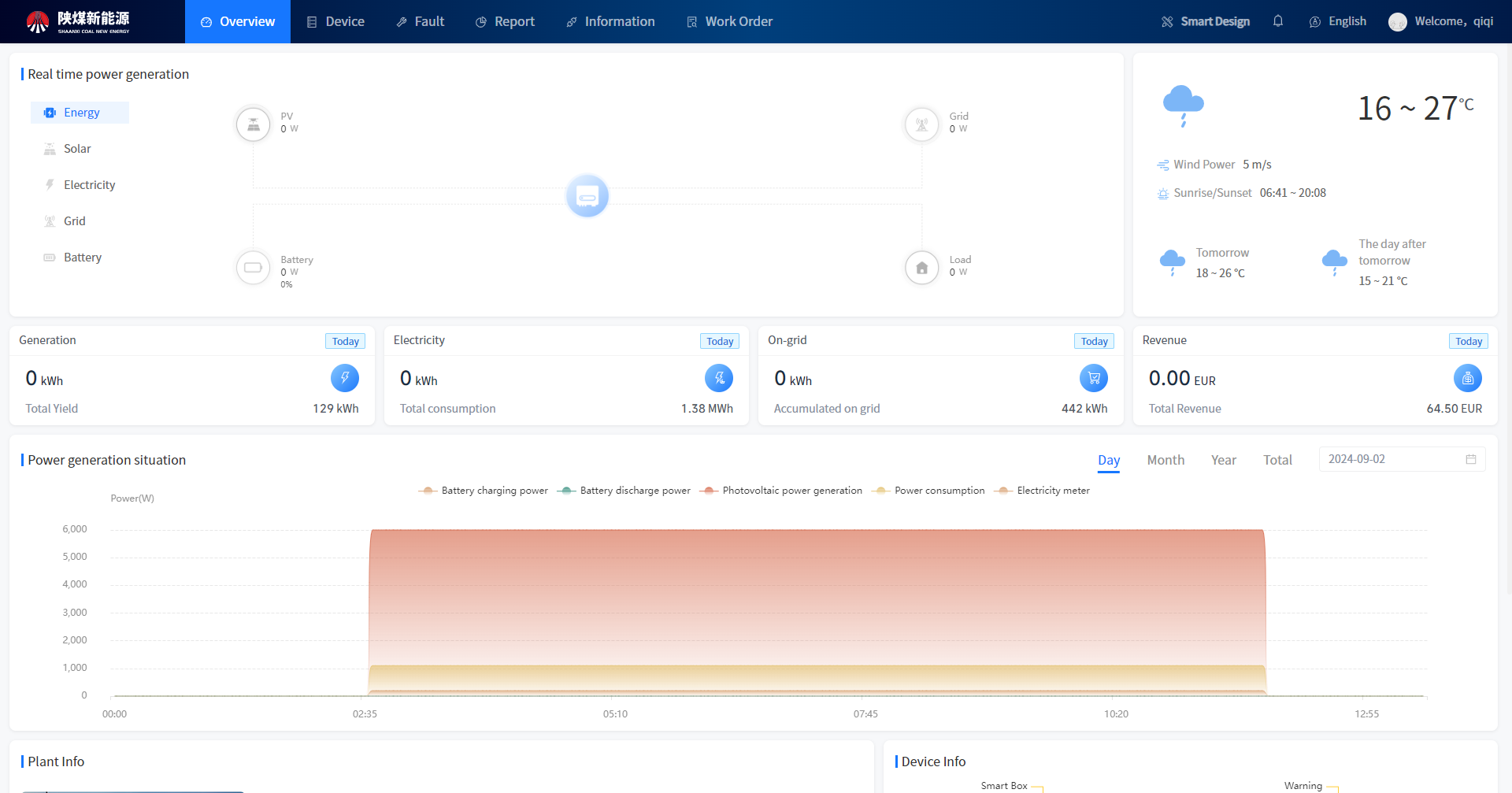 [Electricity] Show the real-time power and generation statistics of photovoltaic power generation at your selected plant.