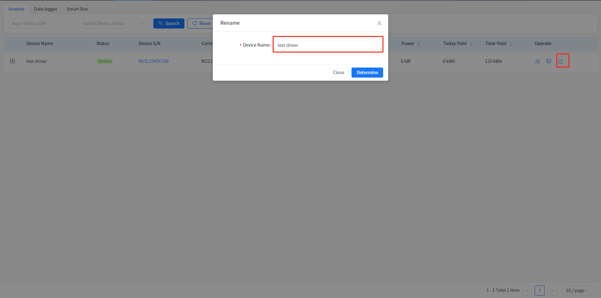③ Enter a new device name in the pop-up Rename device name box and click the [Determine] button.