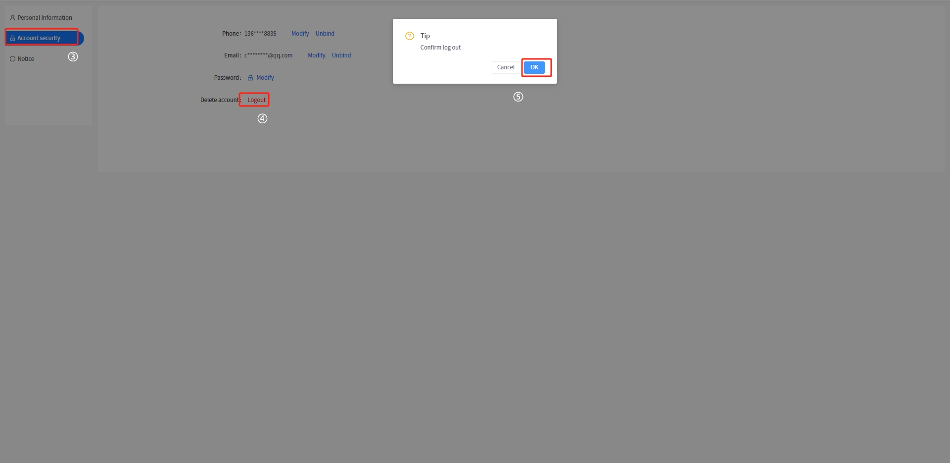 # Account logout