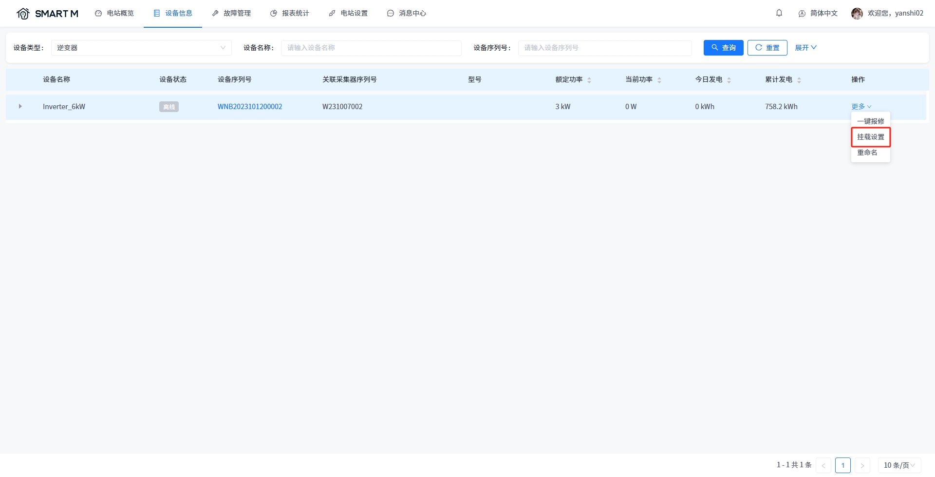 ① 点击设备信息-[更多] - [挂载设备]按钮。