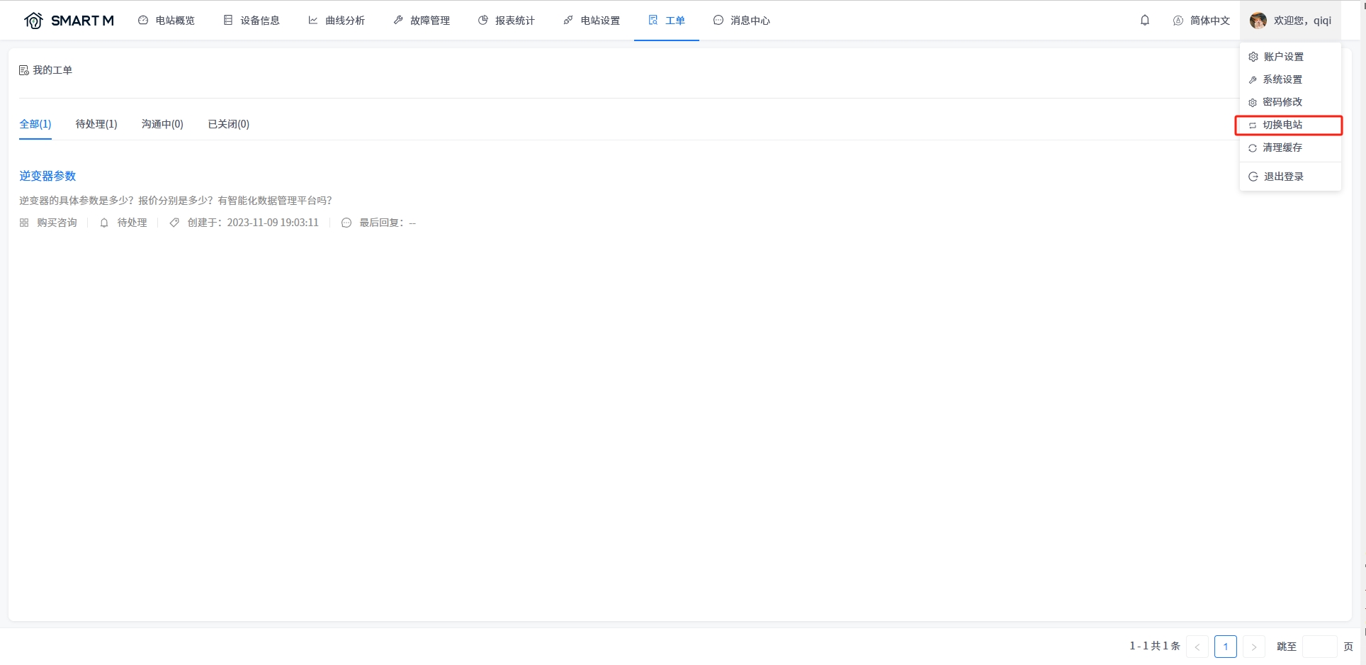 陕煤新能源系统支持一个业主绑定多个电站,系统默认只展示一个电站的数据,您可以通过下面步骤查看您名下的其他电站。
