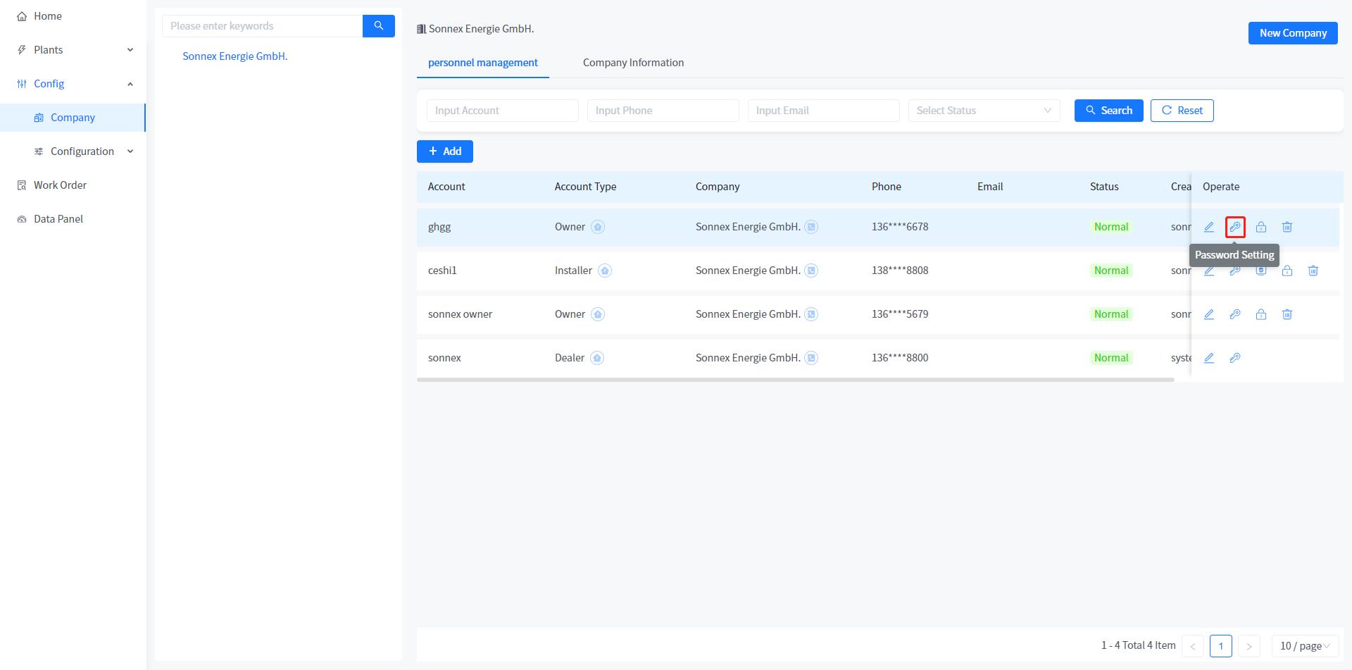 ② Click on the "More" - "Change Password" button in the operation bar for authorized personnel.