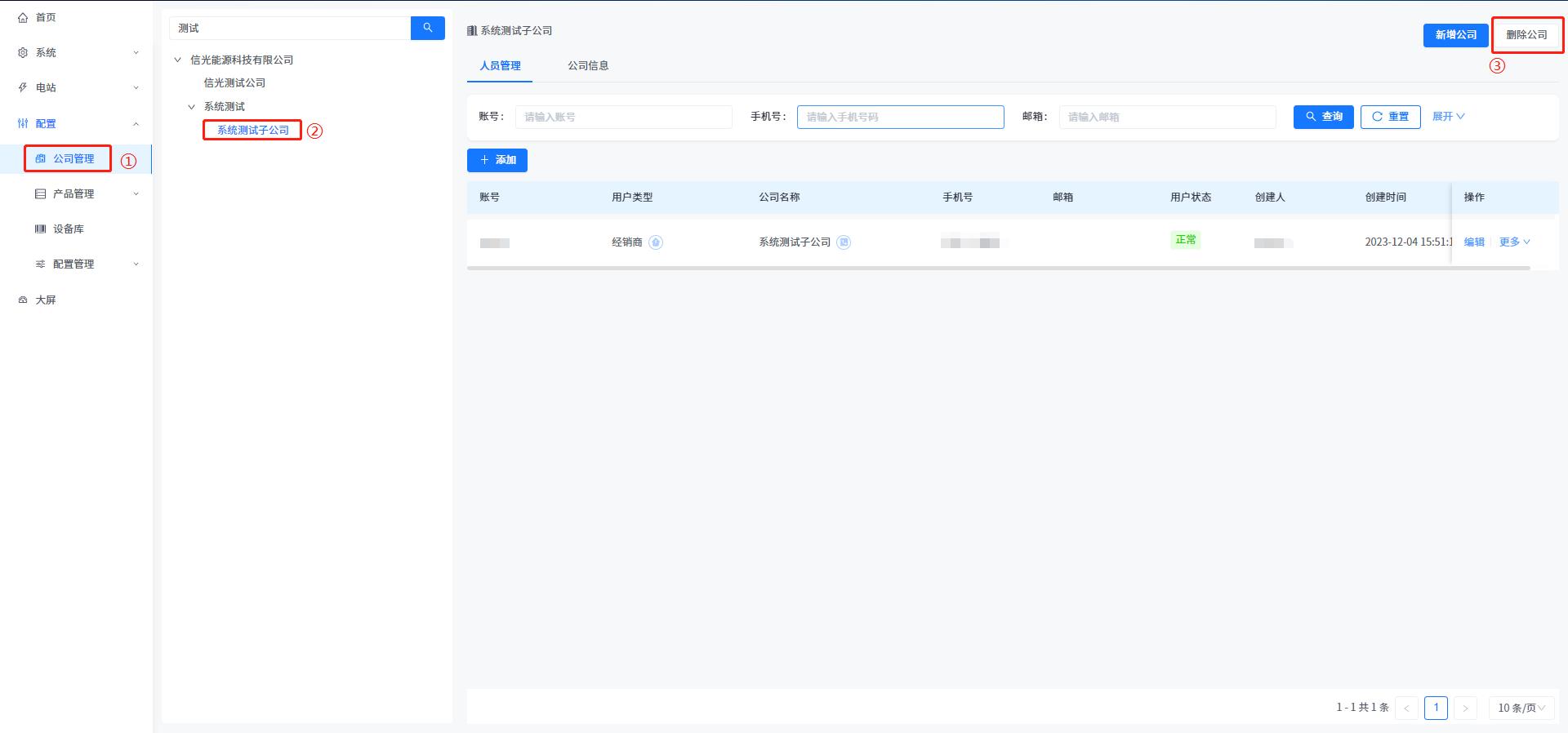陕西煤业新型能源科技股份有限公司 对系统内归属您的下级公司进行删除操作,公司删除时只能删除名下没有下级公司和人员的公司,如果有人员或者公司下级,无法删除。