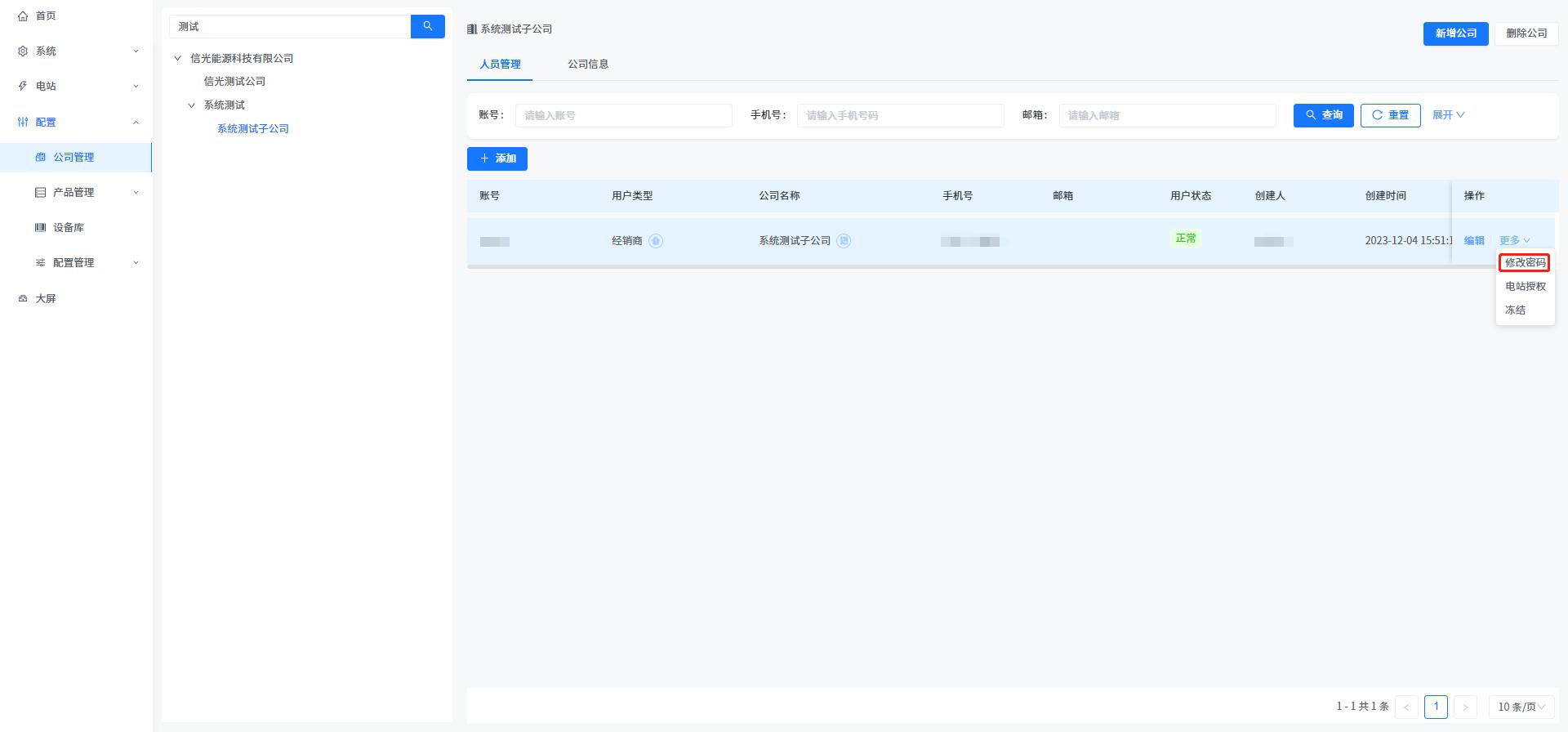 ② 点击需要授权人员操作栏-[更多]-[修改密码]按钮。
