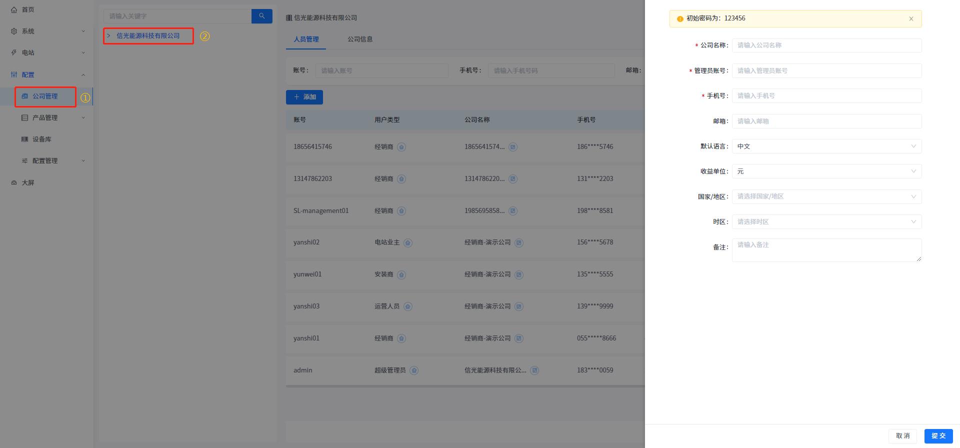 ② 选择左侧树状图中任一公司,点击[新增公司]按钮,右侧弹出添加公司页面。