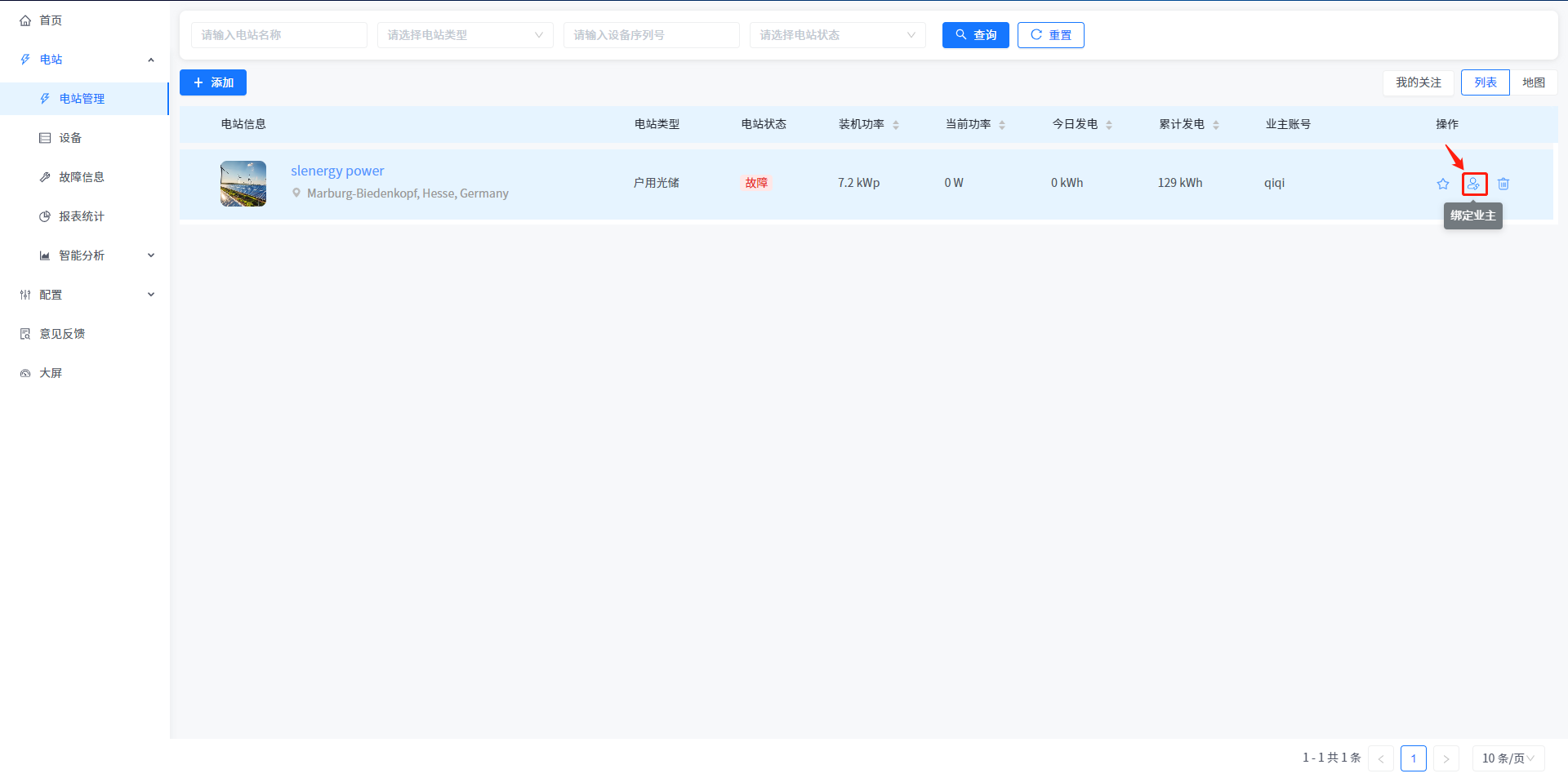 您可以在电站管理页面直接对电站的业主进行绑定和更换的操作。