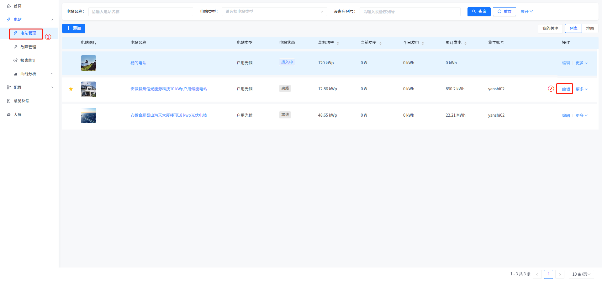 ③ 修改需要改动的字段信息,输入的电站信息需要符合新建时校验规则。